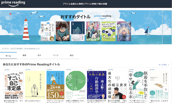 Prime ReadingはAmazonプライム会員であれば追加料金なしで使える、電子書籍の読み放題サービスです。